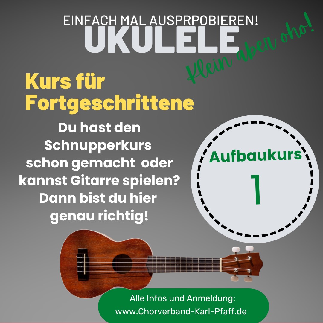 Sie haben den Schnupperkurs schon besucht? Sie spielen Gitarre und kennen sich mit Griffen aus? Dann ist unser Fortgeschrittenen Kurs auf der Ukulele genau das richtige für Sie! Wir nehmen Griffe mit dazu und können so noch viel mehr Lieder begleiten.